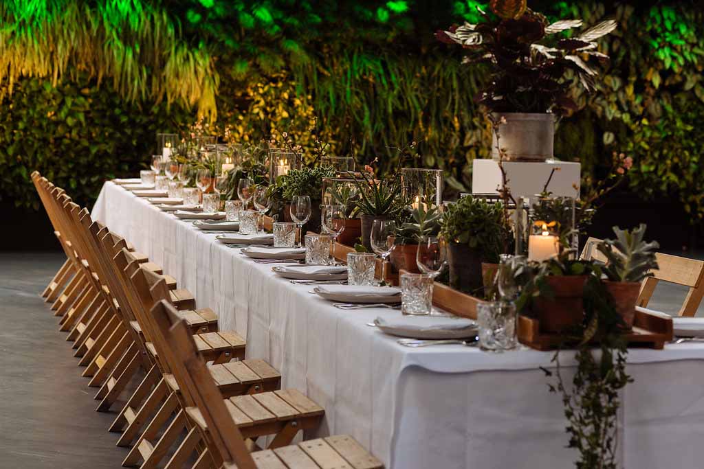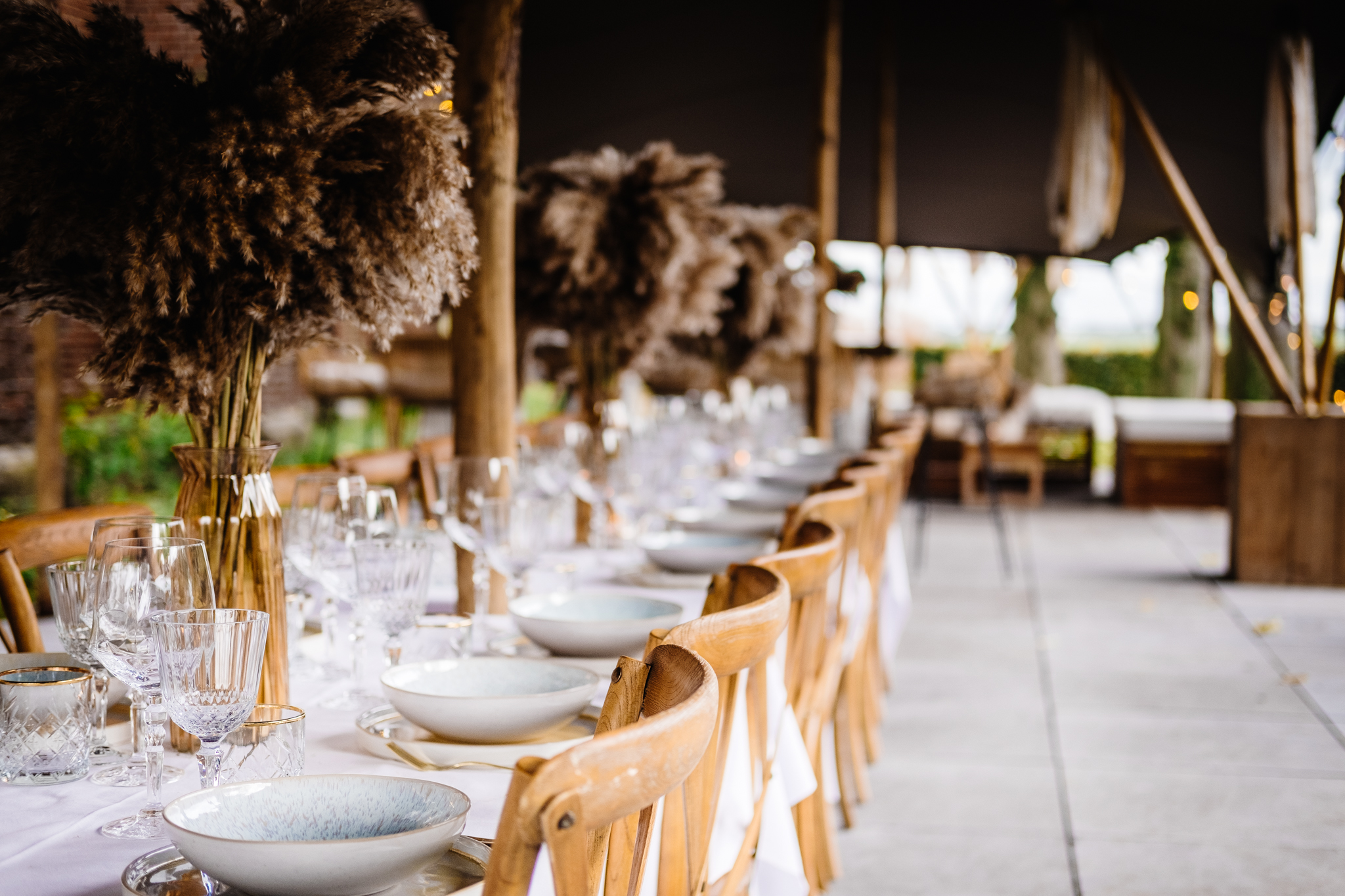 Voor eten en drinken werken we samen met professionele cateraars, omdat zij hierin gespecialiseerd zijn. Wel verzorgen wij alle benodigde materialen, bar-elementen en meubilair.