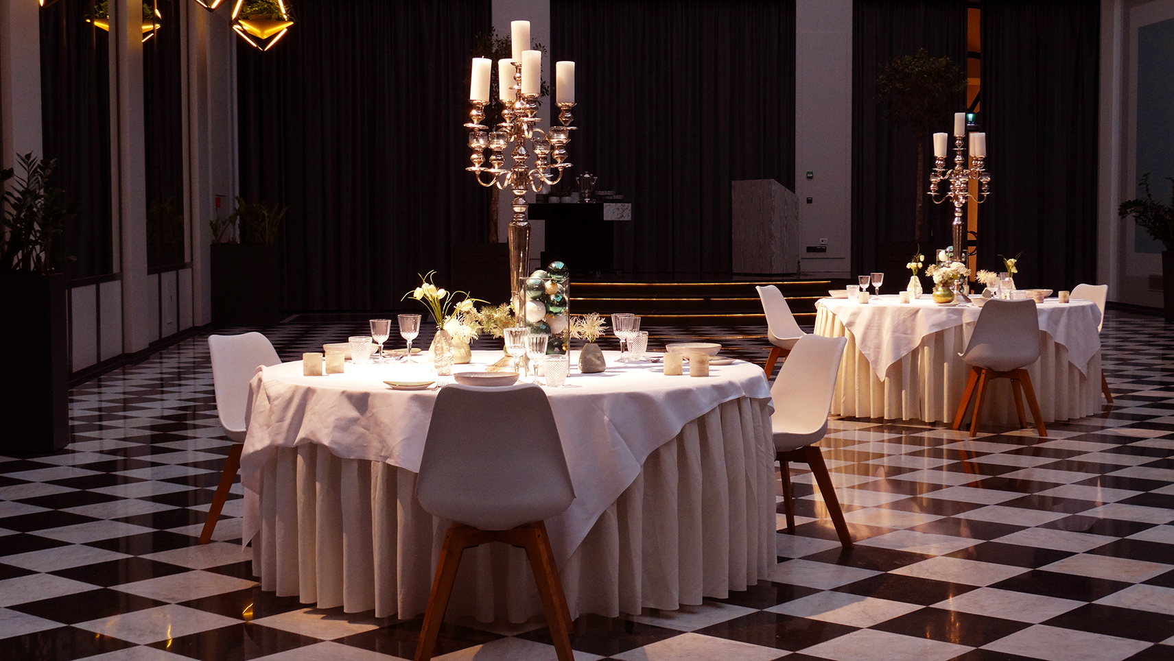 Het is een avond van verfijning, grandeur en het achterlaten van een onvergetelijke indruk op je gasten. Elk detail verdient daarbij evenveel aandacht. Wij verhuren niet alleen tafels en stoelen, maar creëren een totaalbeleving. We trekken de decoratie door van ontvangst tot de rode loper, het netwerkgebied en zelfs bij de wastafels van de toiletten. Een galadiner moet elegantie uitstralen, en dat is een belofte die wij graag waarmaken.