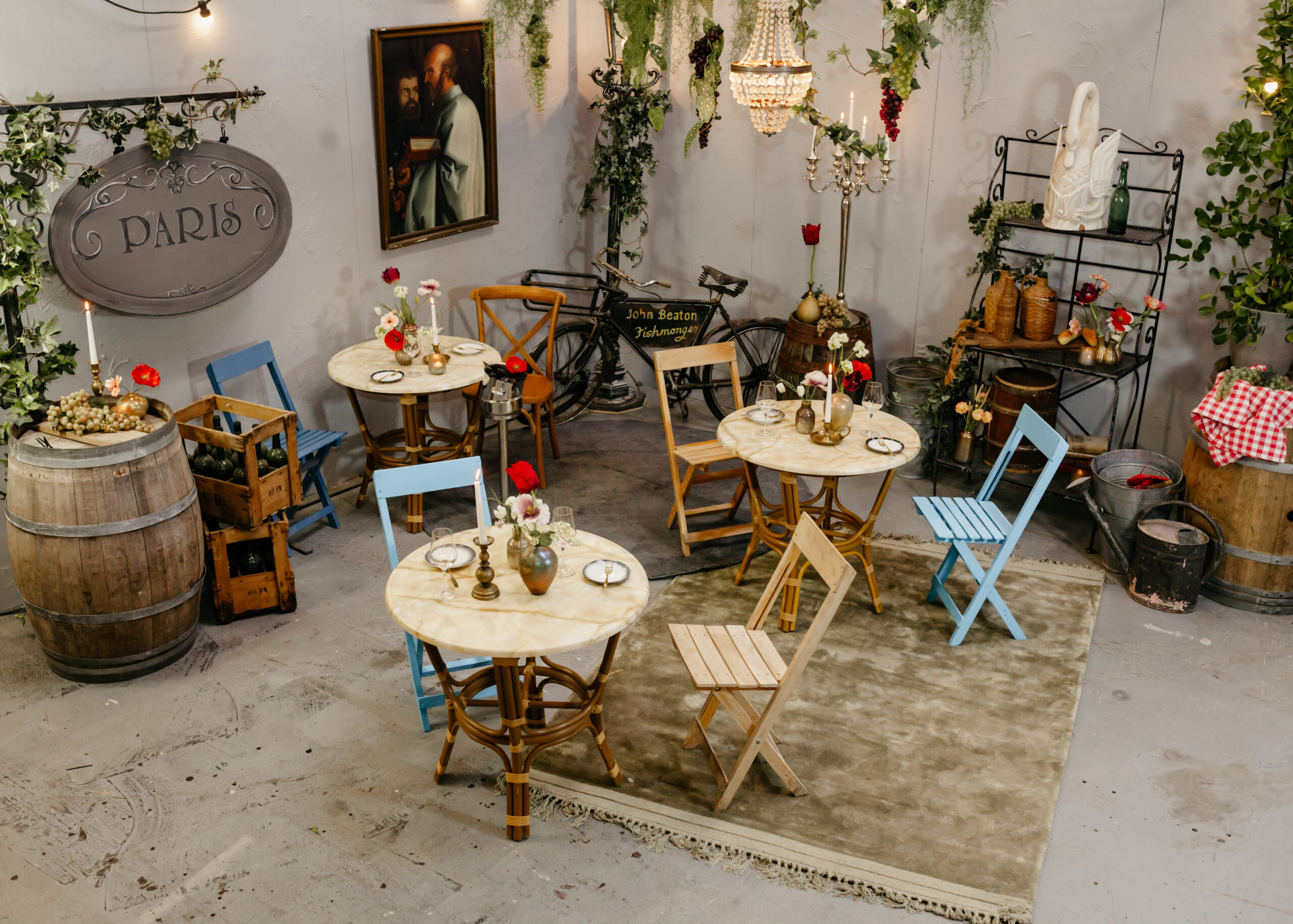 Langs de Champs-Élysées, of een rondje langs de Seine? Waan je in Parijs en breng de Franse charme naar jouw event. We plaatsen romantisch gedekte tafels, met zachte kleuren,verse bloemen en die typische bistro-sfeer. Of pak uit met grote kandelaars, Franse kiosken en brocante details. Perfect voor een feest vol joie de vivre en elegante eenvoud.