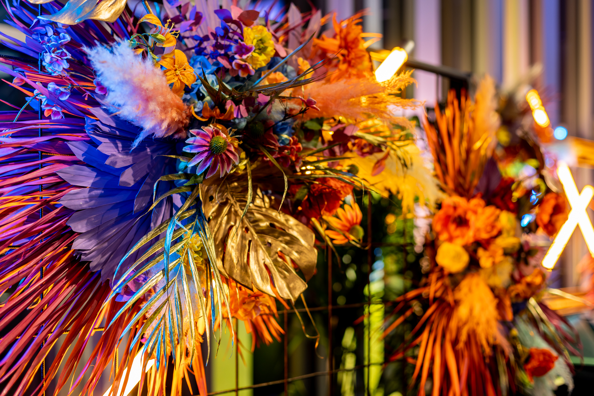 Voor het feestgedeelte in de loft was BloemBloem verantwoordelijk voor diverse decorstukken. Denk aan toffe (cocktail)baren, buffetten waar de typische Rotterdamse late night snacks werden geserveerd, gezellige zitjes en statafels, groendecoratie én creatieve decoratie-elementen verspreid over de verschillende ruimtes. Zo ontstond een feestelijke en persoonlijke sfeer die helemaal paste bij EDGE en hun jubileum.